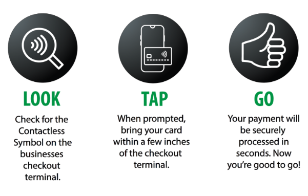 Exchange Bank’s new debit cards include the latest chip technology including support for contactless transactions. Contactless means you don’t have to insert your card into the point-of-sale terminal and wait. Saving you time every time you tap!